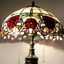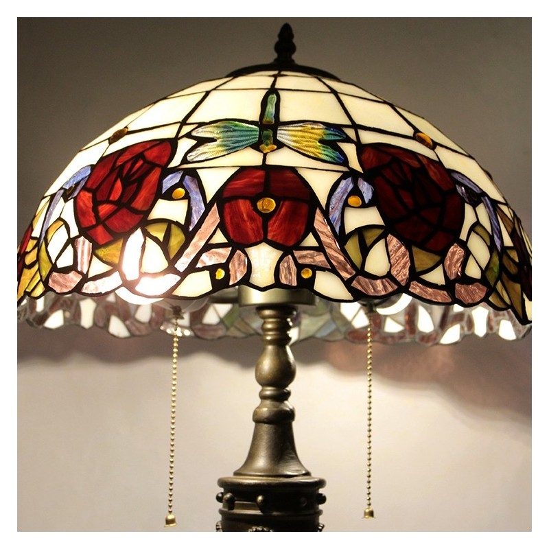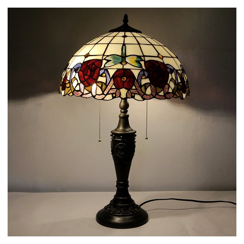Lampe de Table Tiffany rétro de 16 pouces, vitrail rouge, abat-jour Rose rouge, lampe de bureau en verre faite à la main