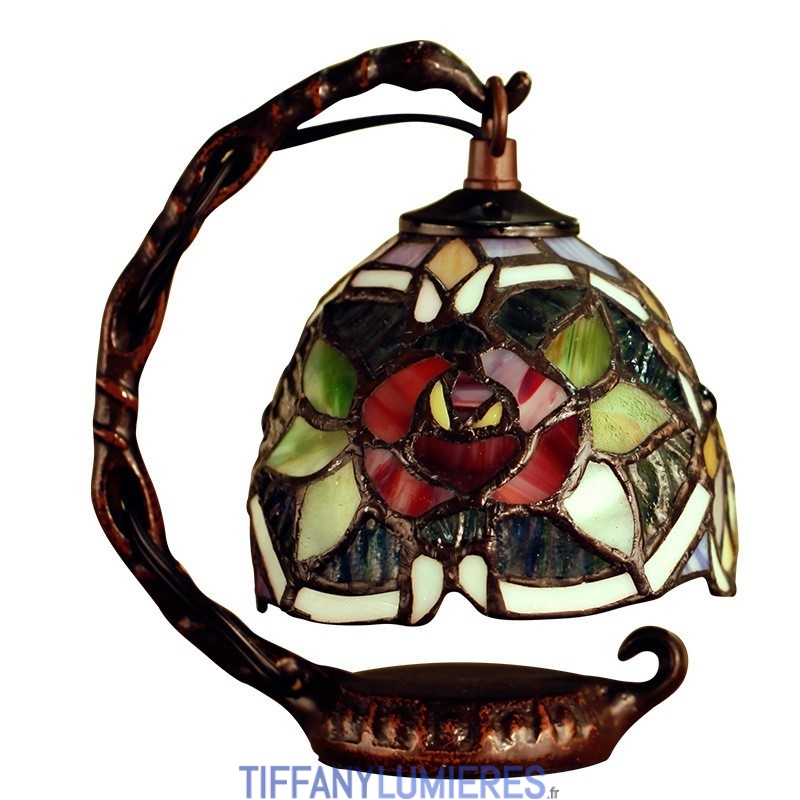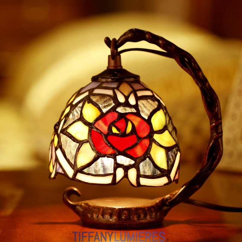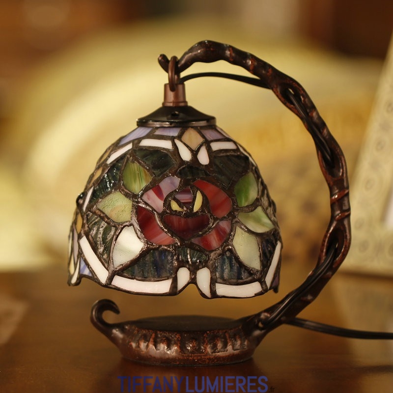 Lampe de table en vitrail Tiffany rose rouge