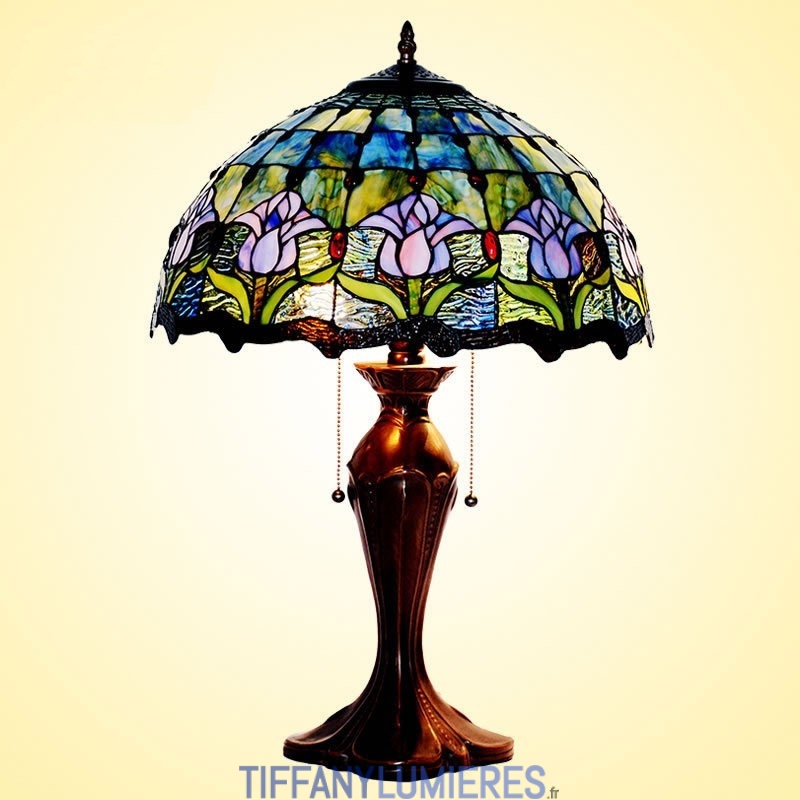 Lampe de table en vitrail Tulip Tiffany 40 cm