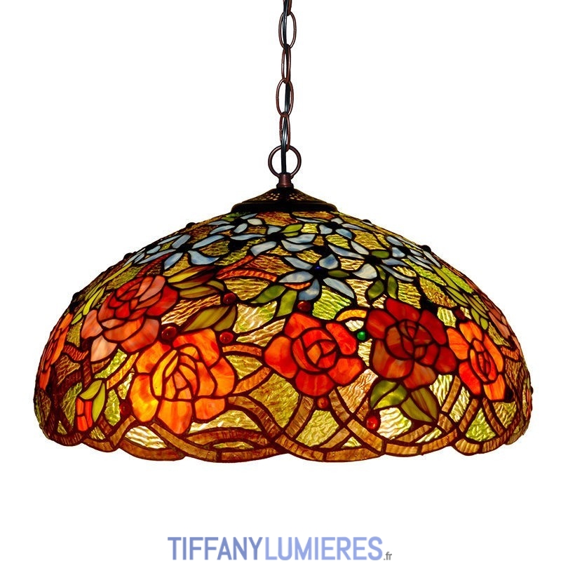 Suspension en vitrail rose Tiffany de 45 cm
