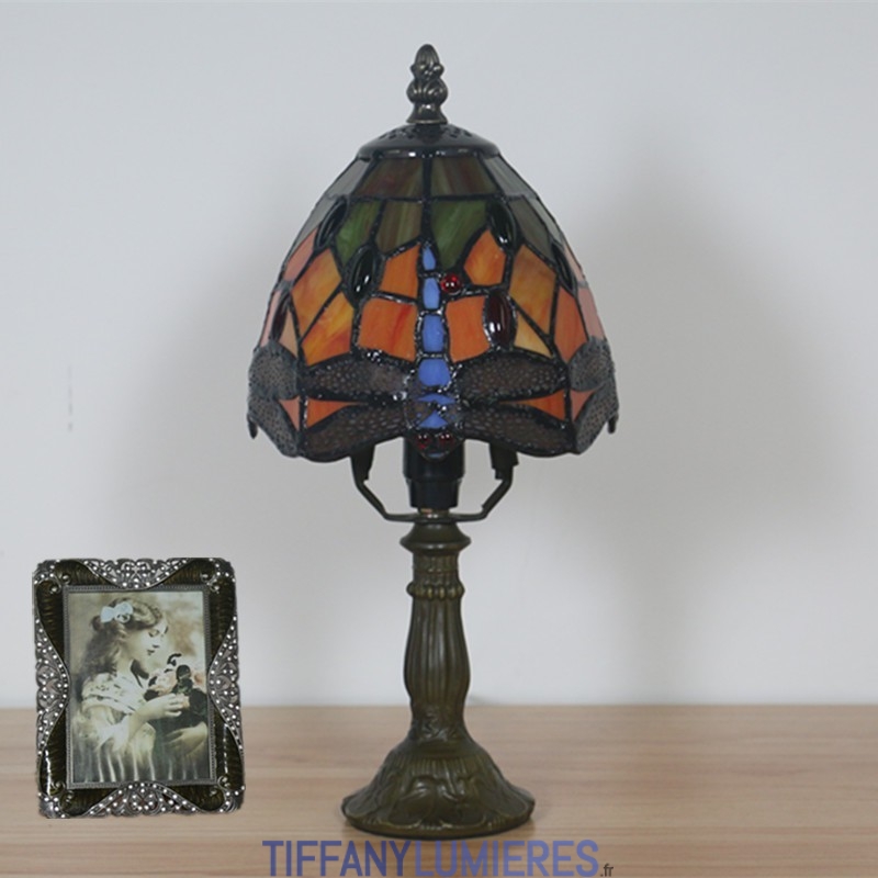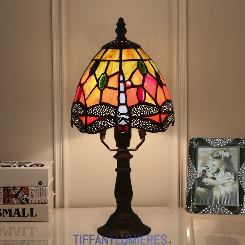 Lampe de table Tiffany de style libellule en vitrail européen de 15 cm