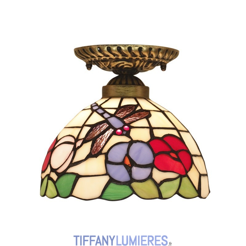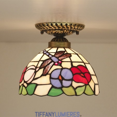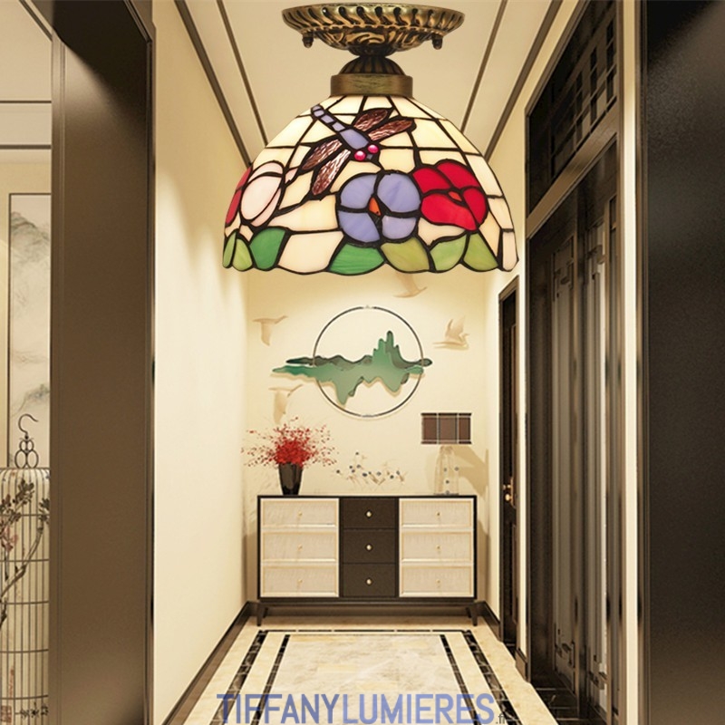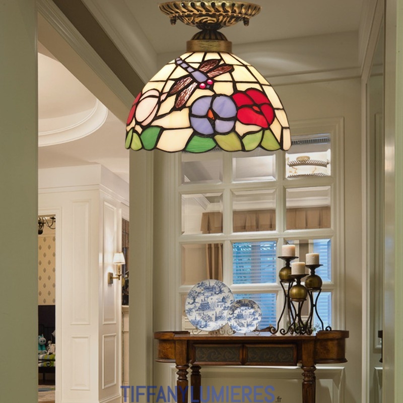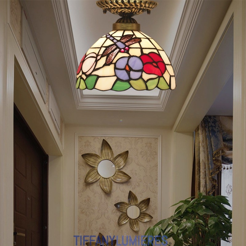 20 cm Vitrail Européen Style Libellule Tiffany Encastré
