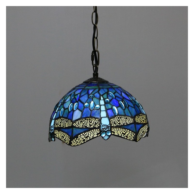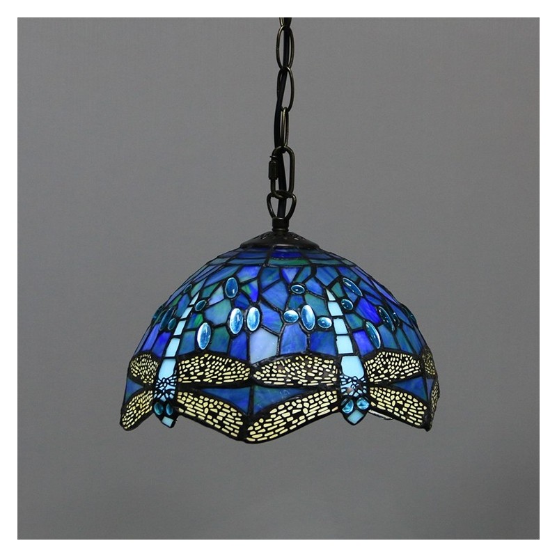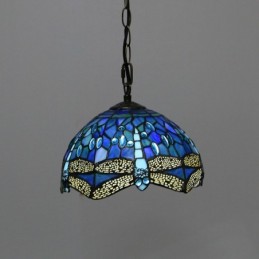 Lampe suspendue de Style Tiffany, 10 pouces, Vintage, libellule bleue, vitrail, abat-jour au plafond